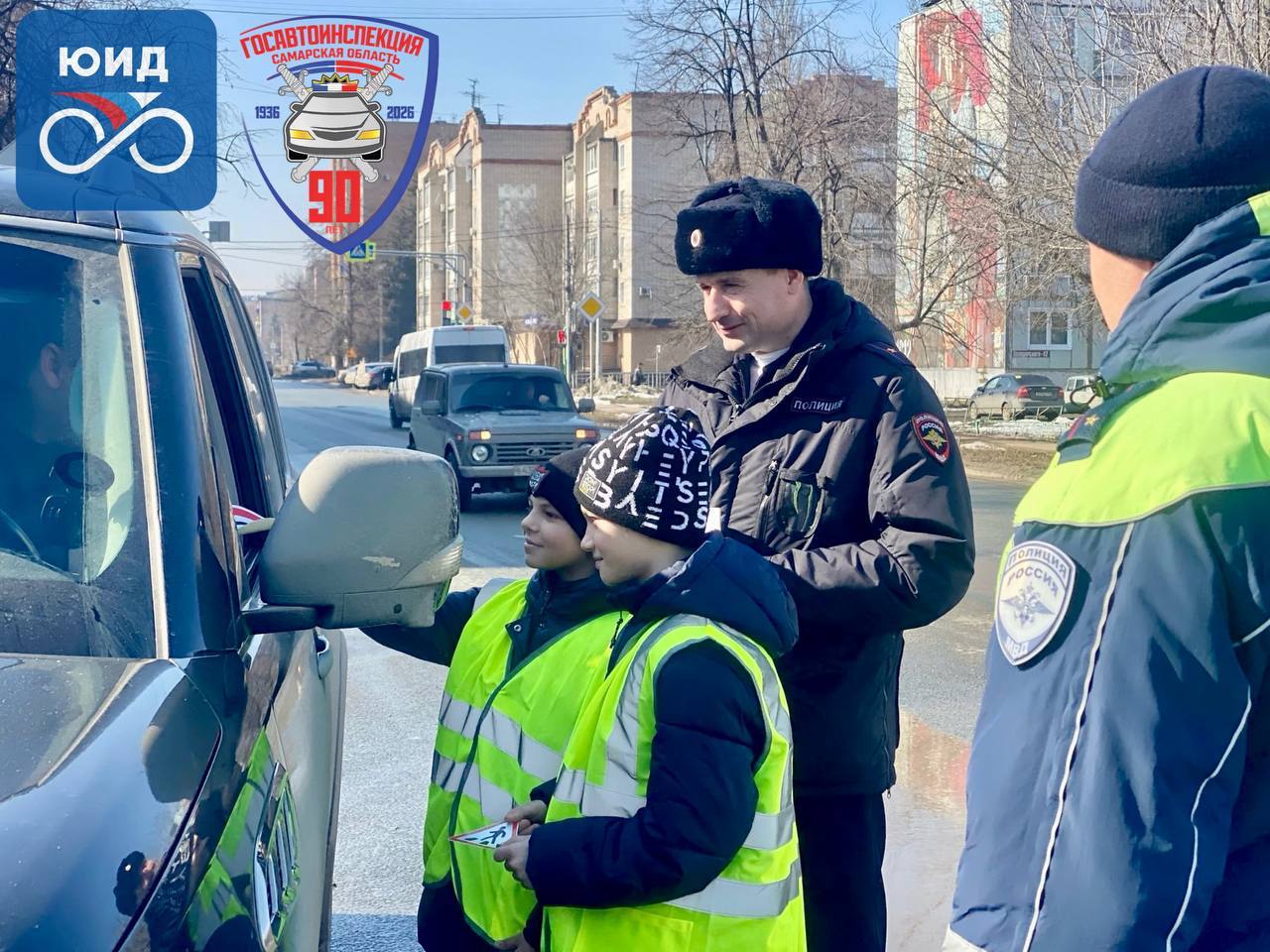 На улицах города юные инспекторы вместе с полицейскими обращались к водителям и пешеходам, напоминая о важности соблюдения ПДД.