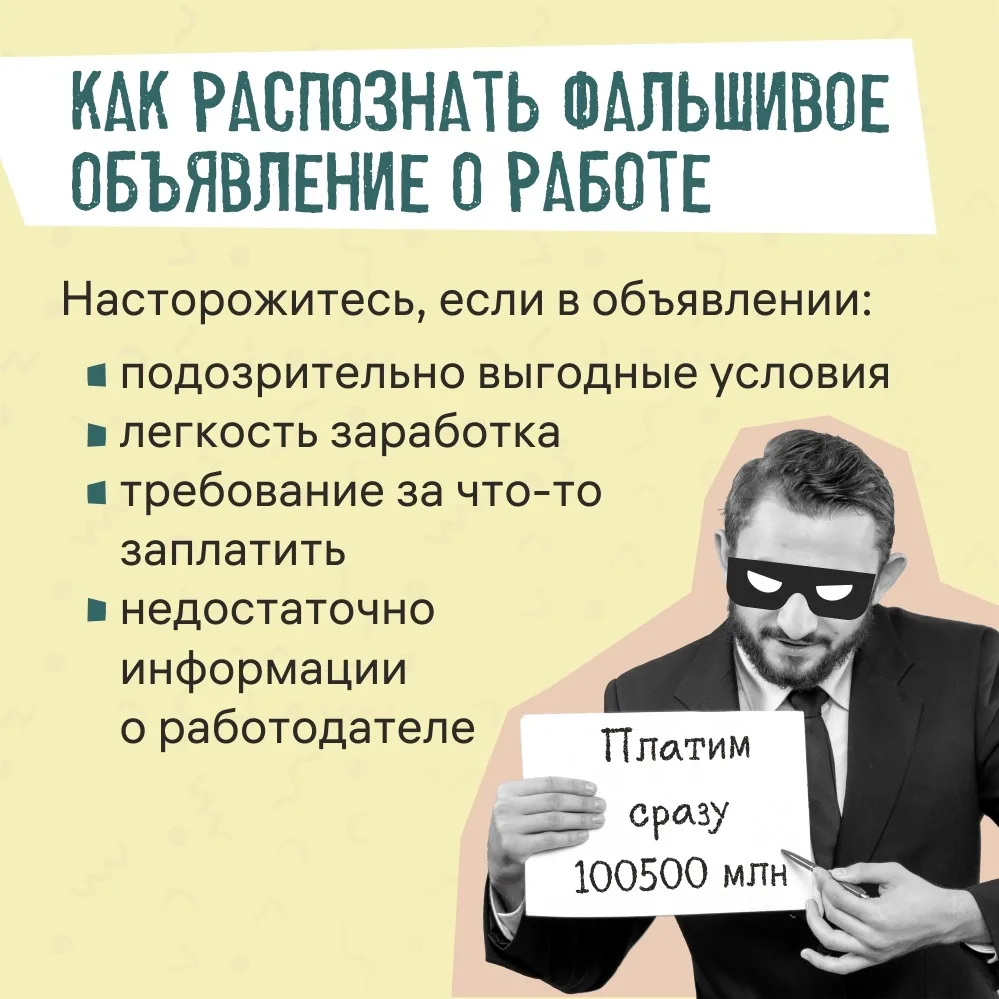 Специальные карточки-памятки научат вас распознавать уловки злоумышленников, маскирующихся под предложениями о заманчивой работе.