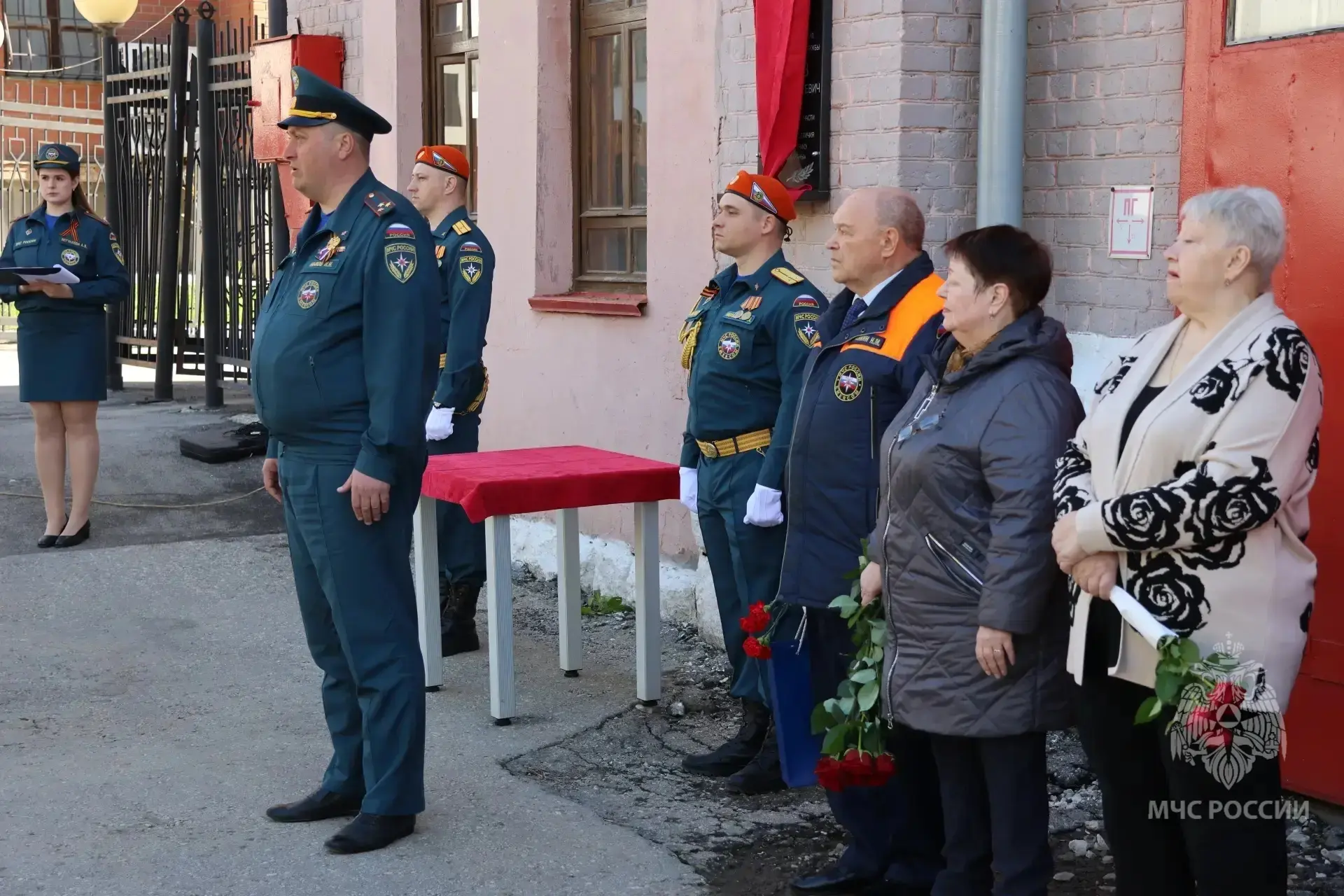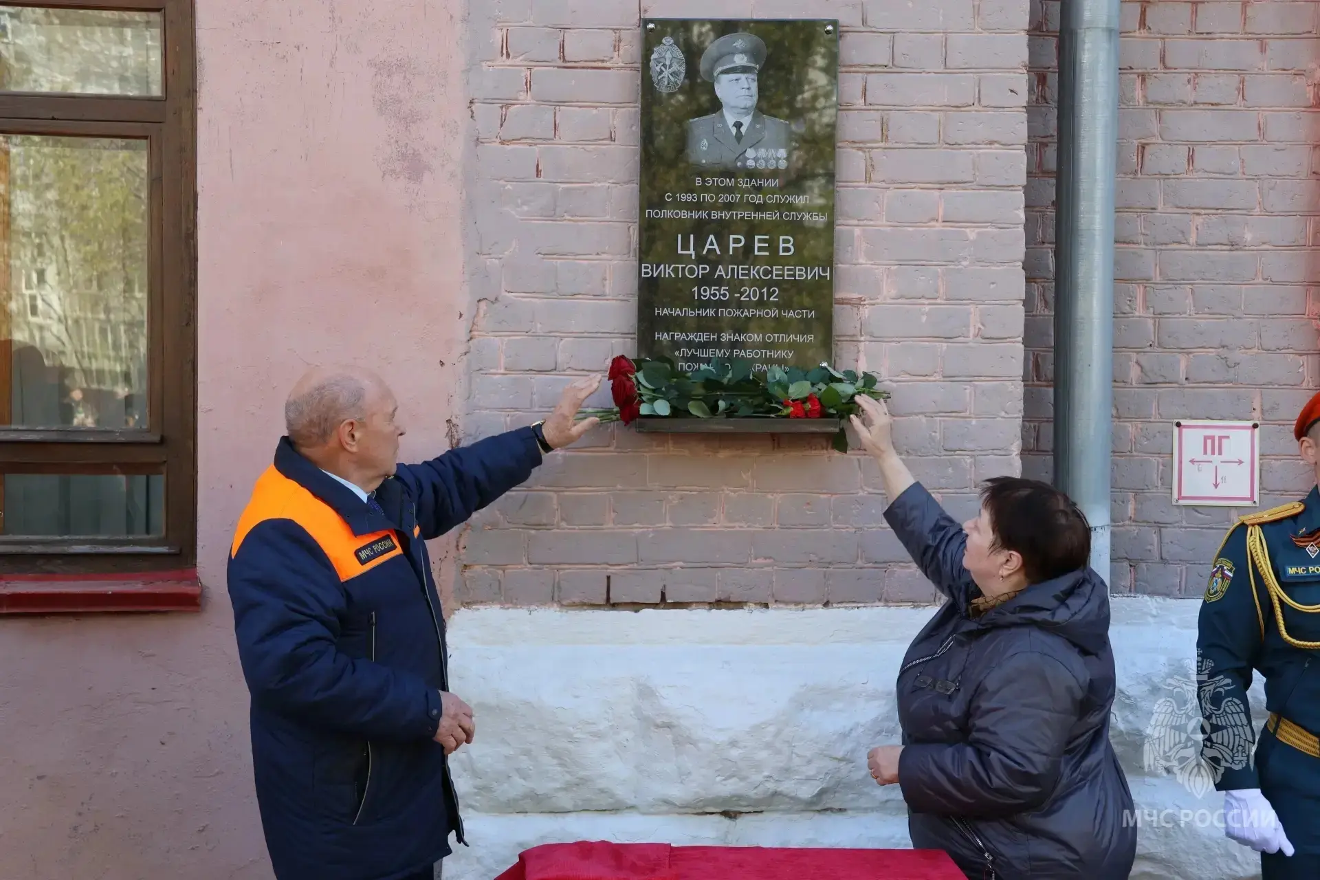 После церемонии почетные гости, родственники, ветераны и сотрудники МЧС возложили цветы к мемориальной доске.