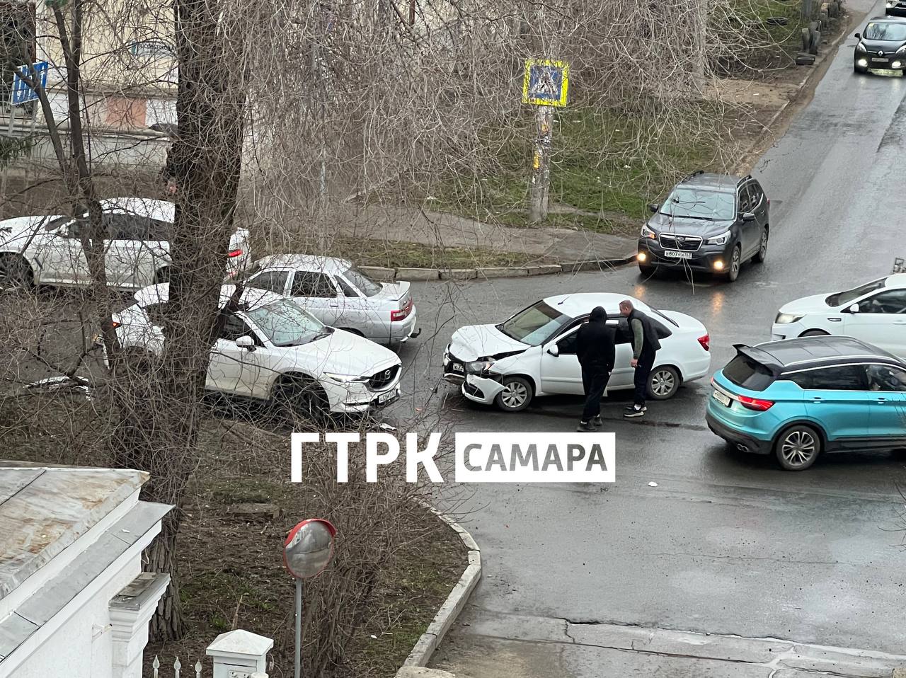 ДТП произошло рано утром в Самаре на пересечении с улицей Тихвинской — столкнулись два автомобиля.