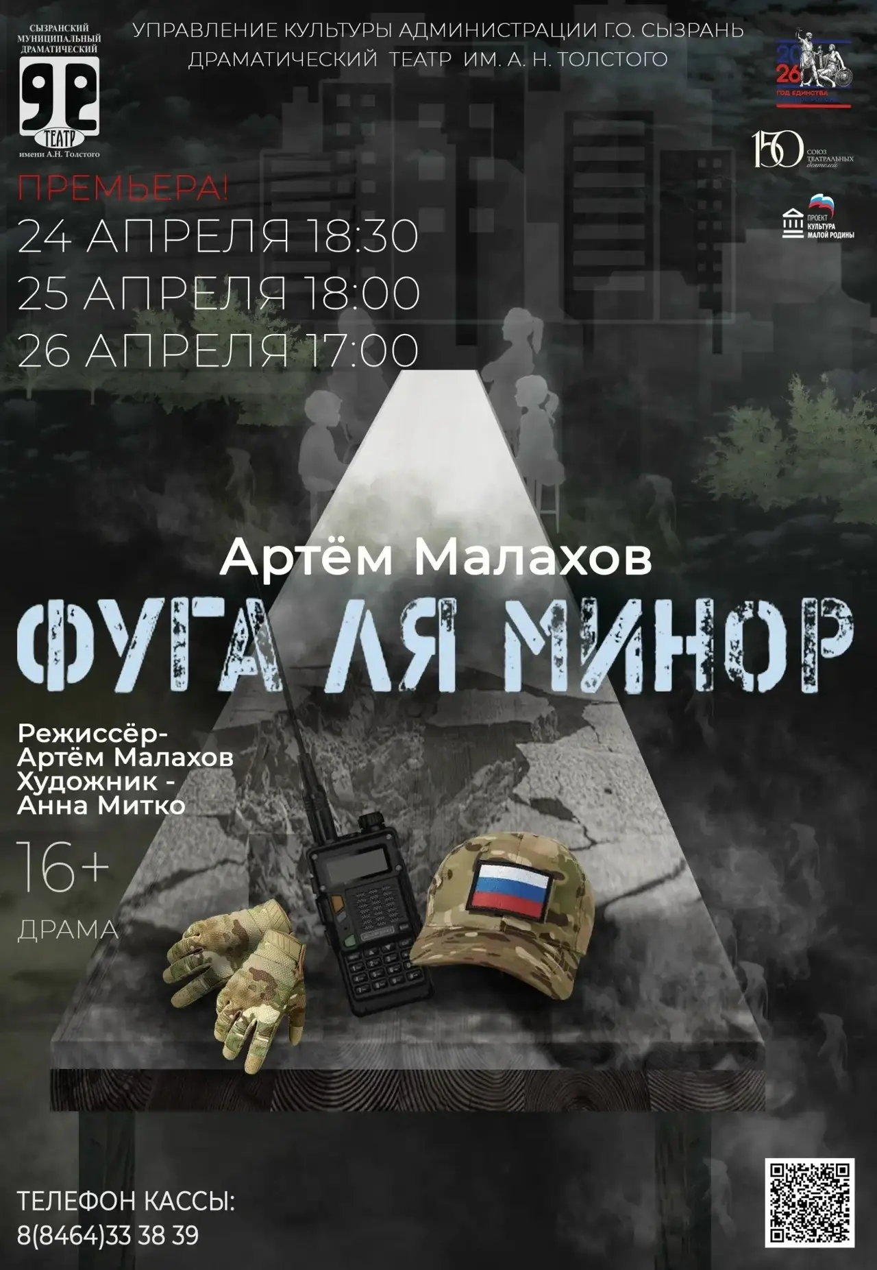 24 апреля, 18:30, 25 апреля 18:00, 26 апреля 17:00 – премьера военной драмы «Фуга ля минор», реж. А. Малахов