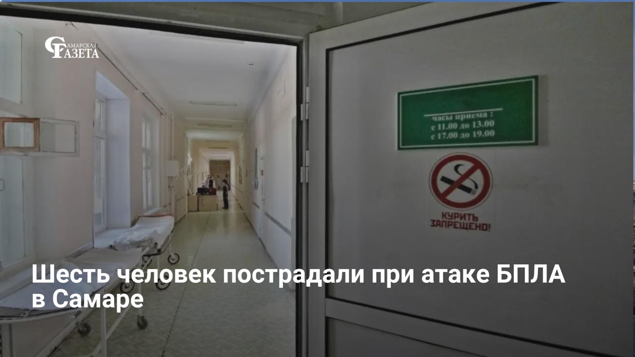 При атаке БПЛА в Самаре 23 апреля пострадали шесть человек: двое госпитализированы в состоянии средней и тяжелой степени тяжести, остальные лечатся амбулаторно. Обломки дрона повредили крышу и окна жилого дома, задев прохожих на улице. Также ранее сообщалось об одном погибшем и одном раненом в результате атаки на предприятия Новокуйбышевска.