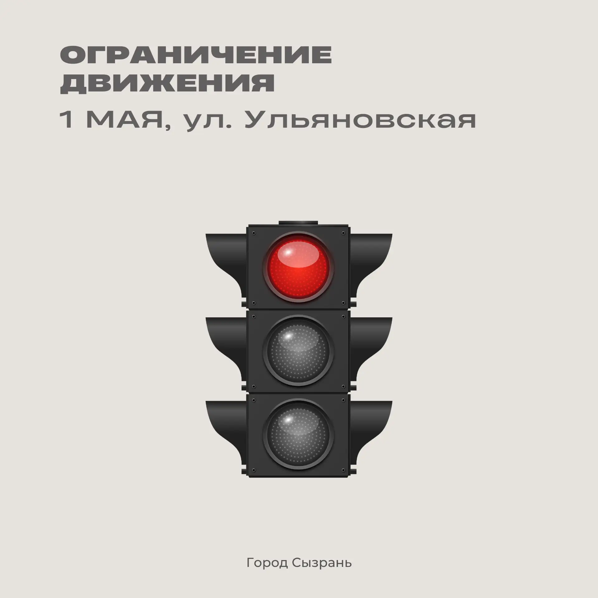 В связи с проведением мероприятия у стелы «Город трудовой доблести» 1 мая с 09:00 до 11:00 будет временно ограничено движение транспорта на участке улицы Ульяновской – от пересечения с ул. Победы до пересечения с ул. Володарского.