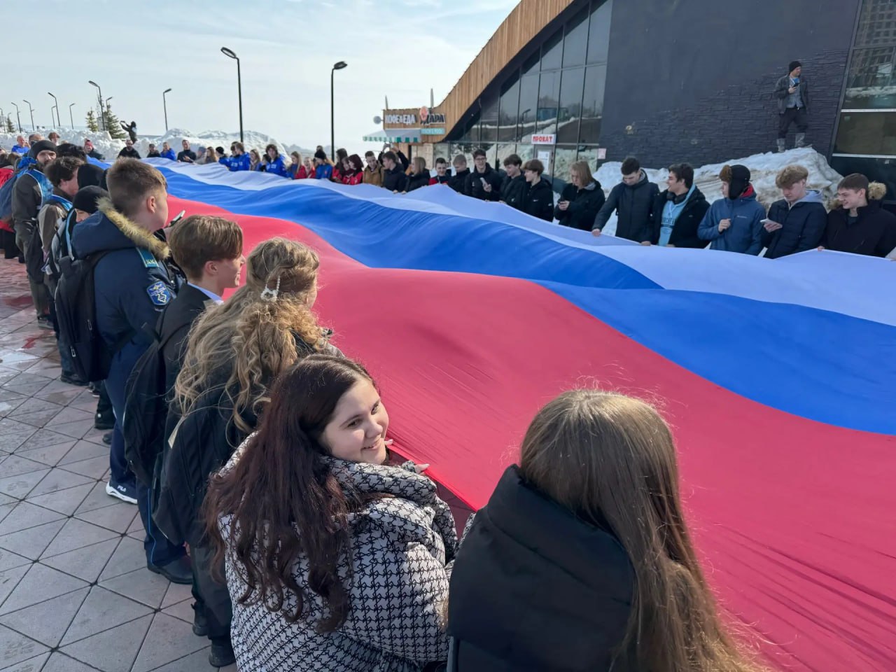 Молодёжь Тольятти вышла на набережную с гигантским флагом России