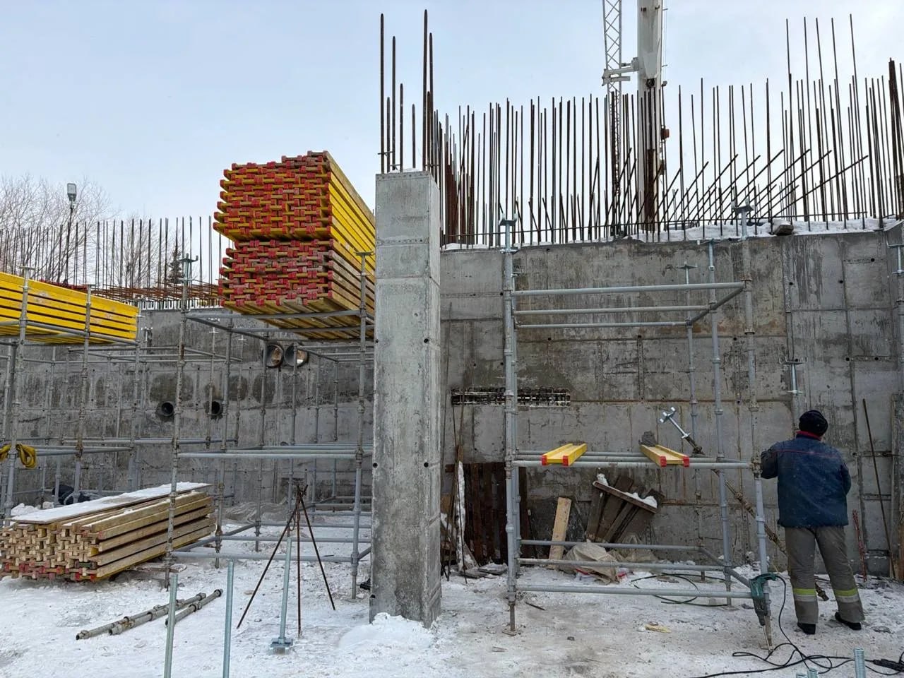 В правой части здания, где расположится планетарий, смонтировали опалубку перекрытия