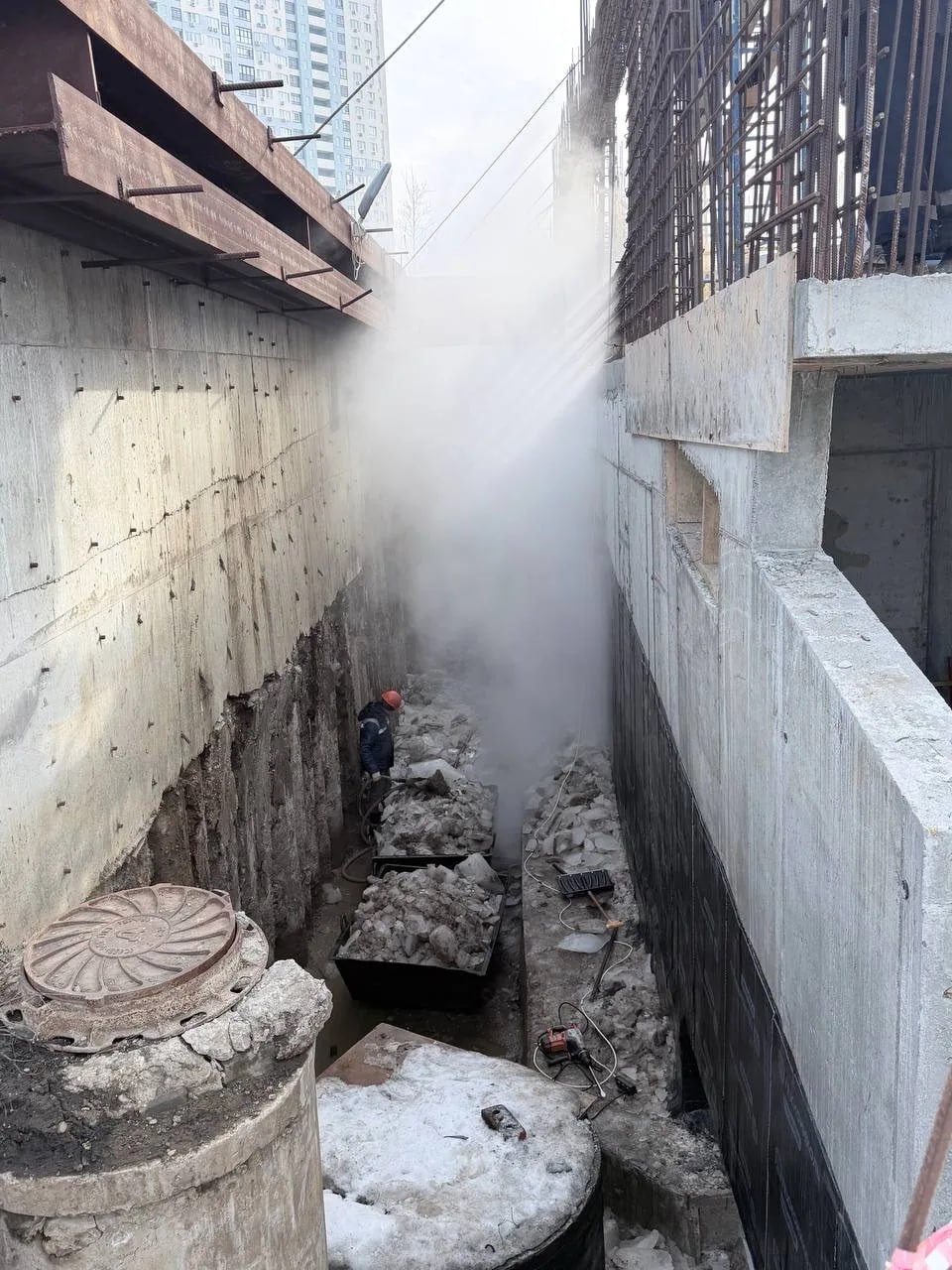 Ведутся работы на «минус 1-м этаже»: армирование лифтовых шахт