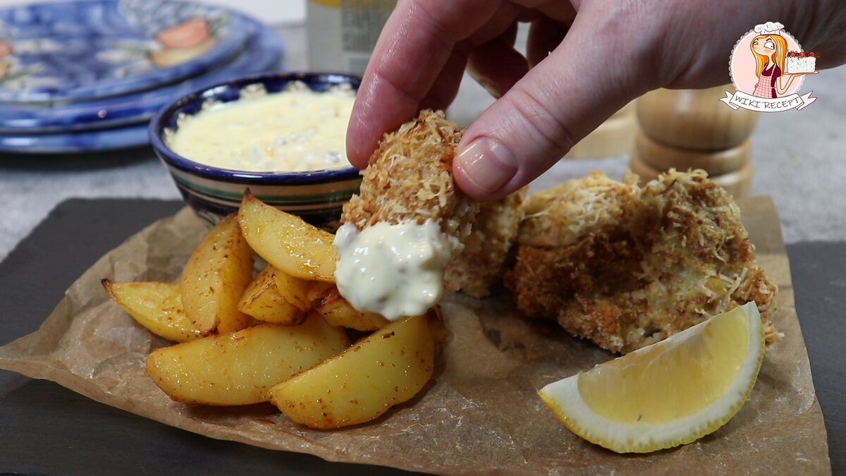 Задача простая: перенести атмосферу знаменитого английского блюда Fish and Chips на кухню, но с меньшим количеством масла и в более полезной интерпретации. Вместо традиционной жарки на сковороде здесь используются запечённые минтай и картошка.