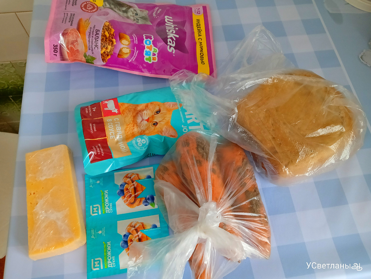 Сегодняшний шопинг в магазине, кажется, стал более приятным, так как удалось значительно сэкономить. В список покупок вошли только необходимые продукты: дрожжи, сыр, морковь, хлеб и, конечно, сливочное масло за 135 рублей.