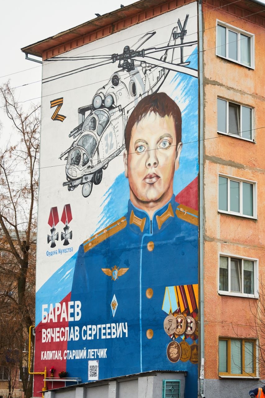 В 2022 году накануне Дня Победы в Сызрани появился первый мурал. На улице Лазо на фасаде дома был увековечен портрет летчика Вячеслава Бараева, капитана вооруженных сил России, погибшего при выполнении задания в зоне специальной военной операции, награжденного двумя орденами Мужества. Недалеко от этого дома Вячеслав жил и учился в школе №21. Гигантский портрет смотрит нам в душу, заставляет остановиться и задуматься.
