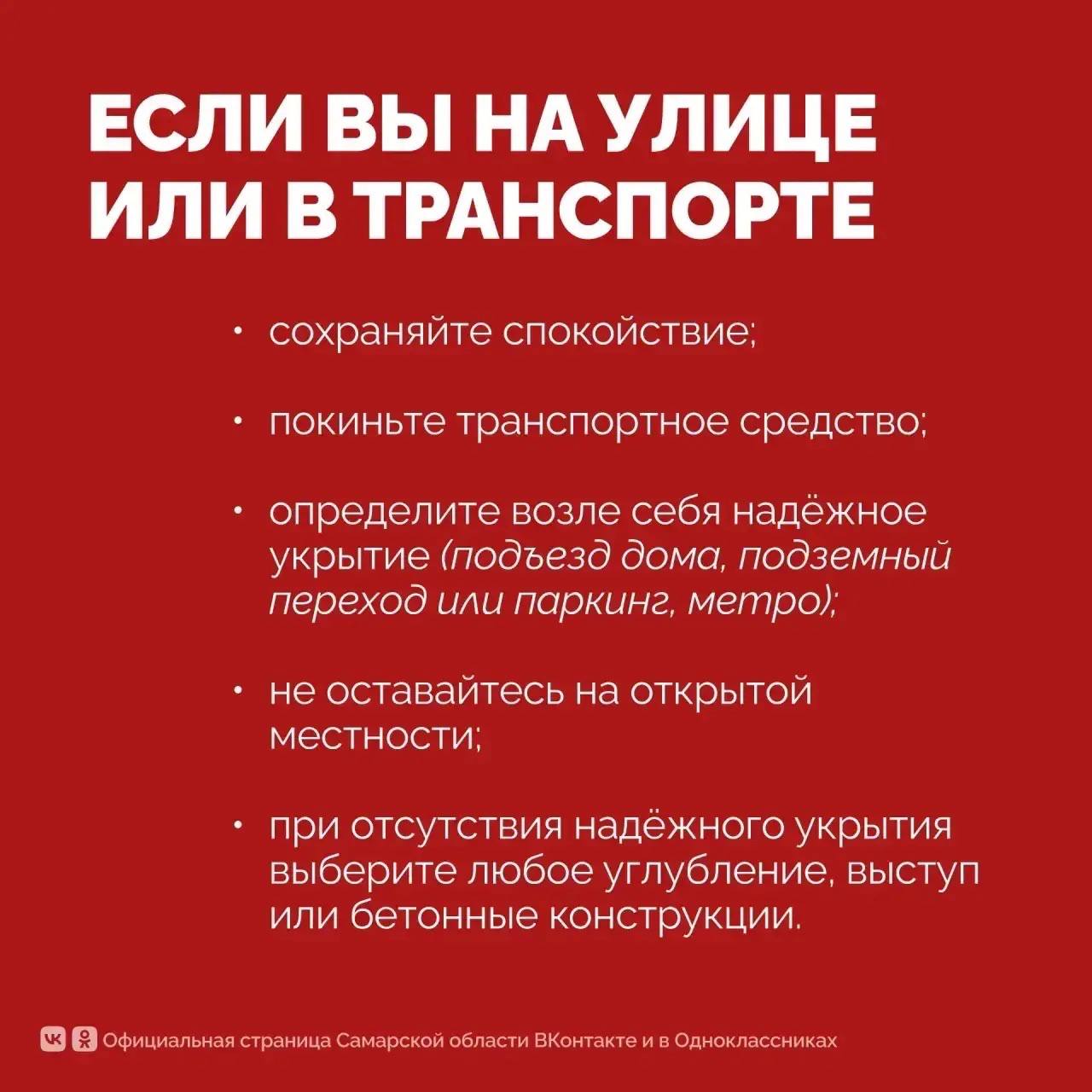 По возможности оставайтесь дома. Укройтесь в помещениях без окон со сплошными стенами. Не подходите к окнам. Если вы находитесь на улице или в транспорте, направляйтесь в ближайшее укрытие или иное безопасное место.ГТРК...