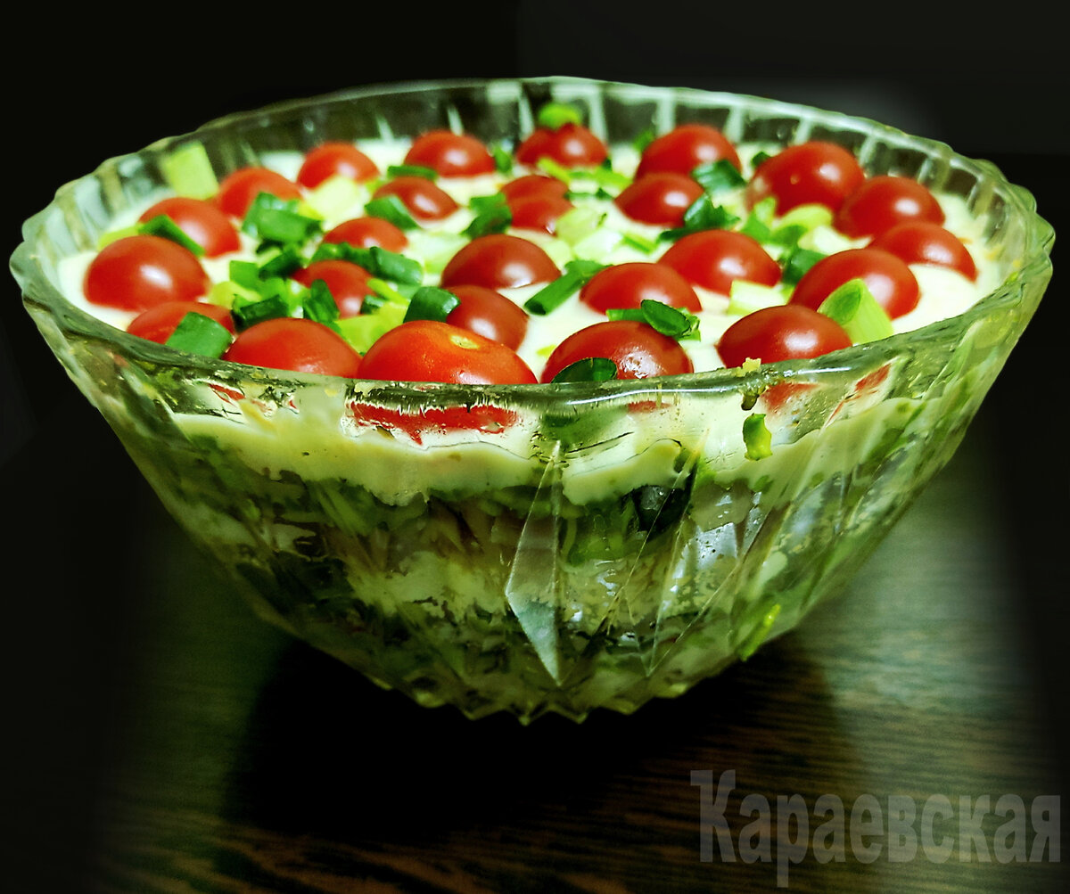Этот простой и изысканный салат порадует вас своей свежестью и ярким вкусом. Слоеная структура позволяет сочетать различные текстуры и ароматы, а доступность ингредиентов делает его идеальным блюдом для любого случая.