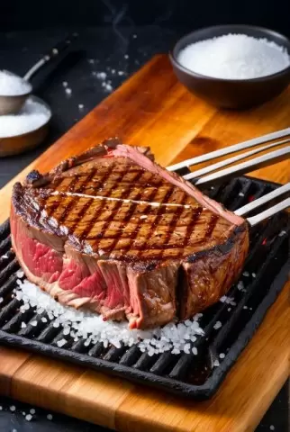 Когда стейк отдохнет, пришло время нарезать и подавать. Используйте острый нож для стейка и специализированную вилку, чтобы аккуратно удерживать мясо, не повреждая волокна. Нарезайте стейк поперек волокон на кусочки толщиной около одного сантиметра. Это сделает его по-настоящему нежным. Подавайте на подогретой тарелке — ваш идеальный стейк готов к подаче!