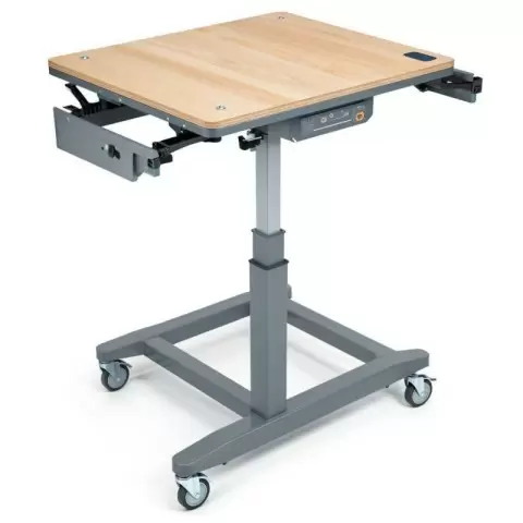 Мобильный верстак сочетает в себе устойчивость и удобство. Его можно легко перемещать по мастерской, что позволяет работать с разными инструментами и материалами в любом уголке помещения. Регулируемая высота обеспечивает комфорт при работе стоя или сидя, исключая необходимость наклона.