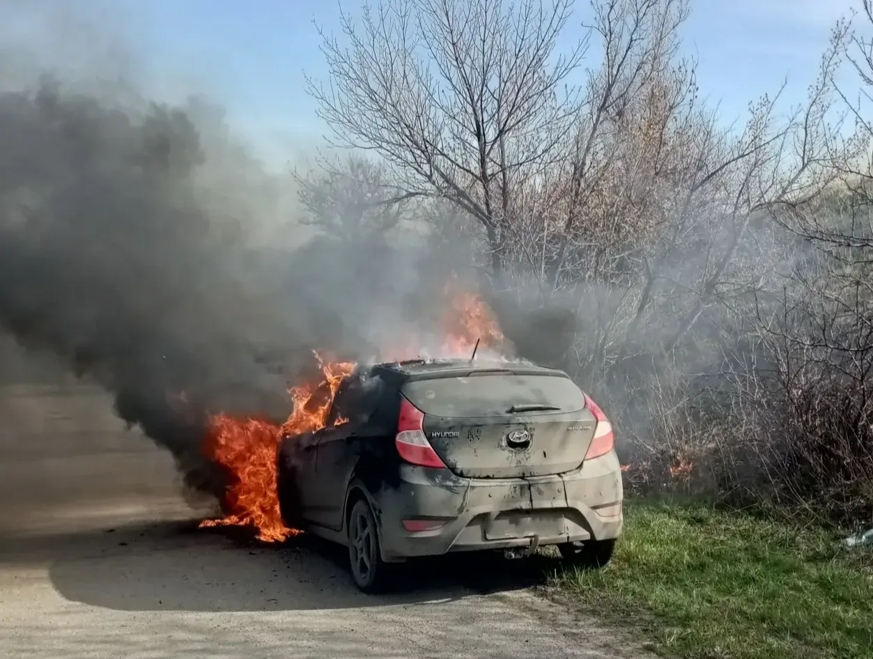Сегодня днём, 17 апреля, в 15:47 поступил сигнал о возгорании автомобиля на спуске к городу Октябрьску. Через минуту спасатели уже были на месте.