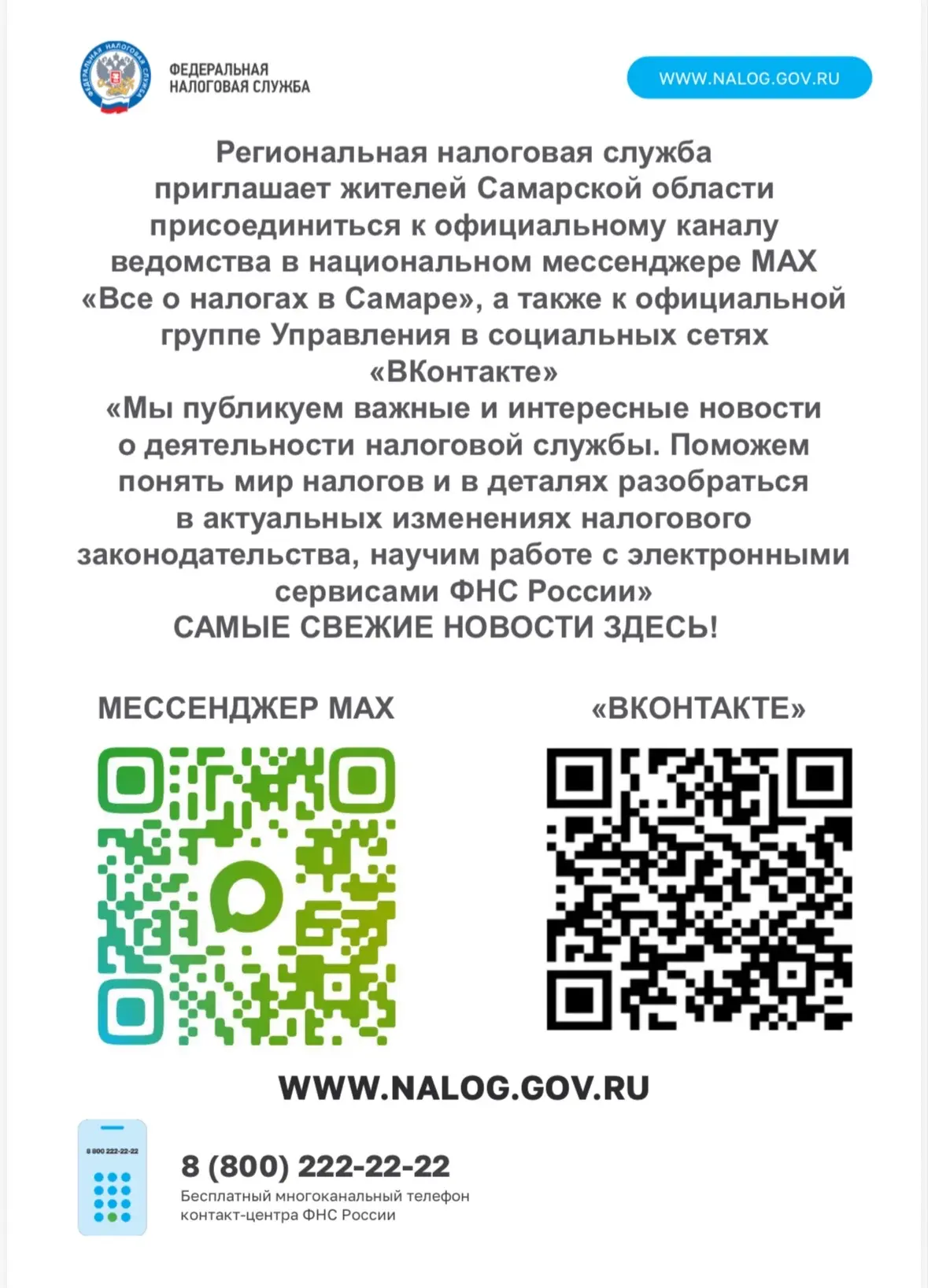 Региональная налоговая служба приглашает жителей присоединиться к официальному каналу ведомства в национальном мессенджере МАХ