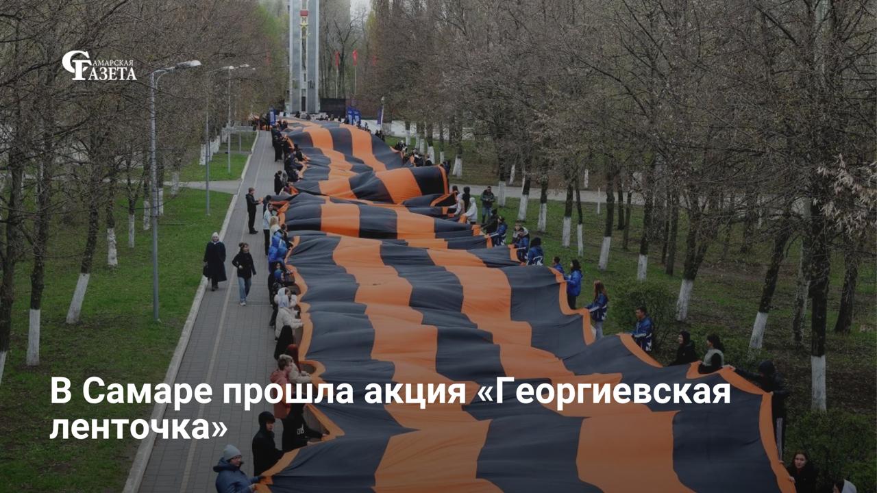 В парке Победы активисты «Молодой Гвардии» провели традиционную акцию, развернув уникальную 300-метровую георгиевскую ленту. Этот символ Победы ранее побывал в Донецке, Мариуполе, на Саур-Могиле и Ржевском мемориале. Как отметил глава Самары Иван Носков, в масштабном мероприятии приняли участие 150 человек, для которых сохранение памяти о героях стало делом чести.