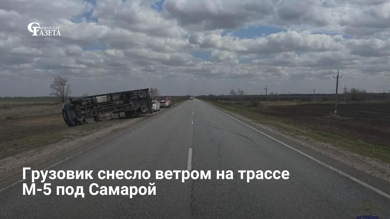 На трассе М-5 в Самарской области ураганный ветер перевернул грузовик. ДТП произошло 27 апреля около 11:30 в Нефтегорском районе. У фургона оторвало часть прицепа, а кабина вылетела в кювет. Очевидцы помогли водителю выбраться, в МВД подтвердили, что пострадавших нет.