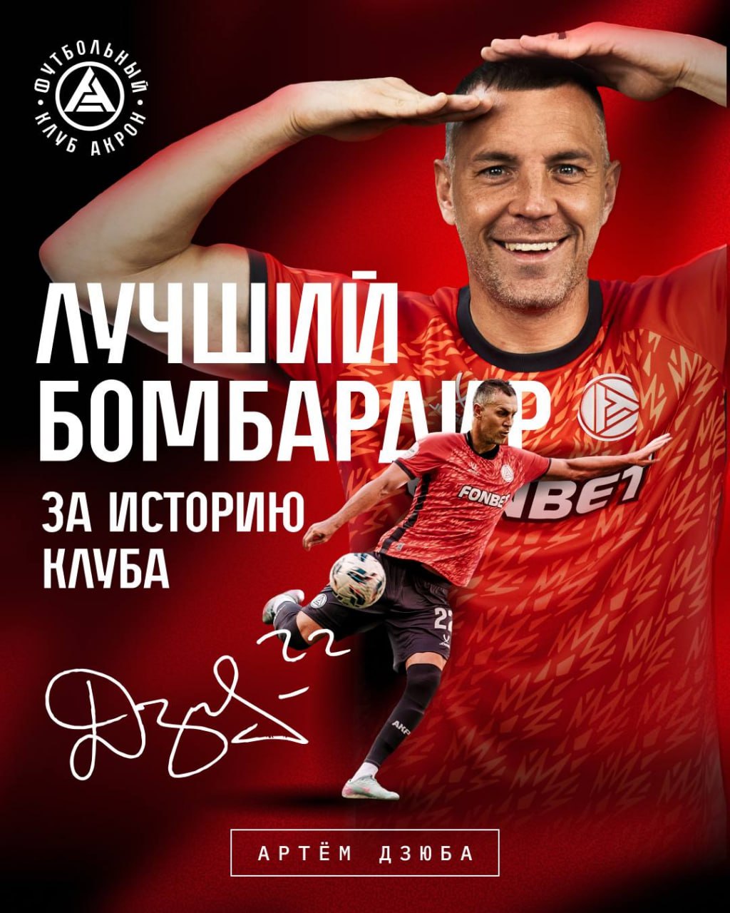 Дзюба стал лучшим бомбардиром в истории «Акрона». 37-летний форвард обошел Андреса Понсе, забив 18-й гол за тольяттинский клуб.